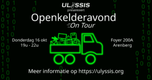 Ben je geïnteresseerd in de werking van ULYSSIS? Wil je graag weten hoe we onze servers onderhouden? Of wil je graag zelf bij ULYSSIS aan de slag? Bezoek dit jaar de serverruimte van ULYSSIS op verplaatsing waar onze leden je graag een woordje uitleg geven en al je vragen beantwoorden!